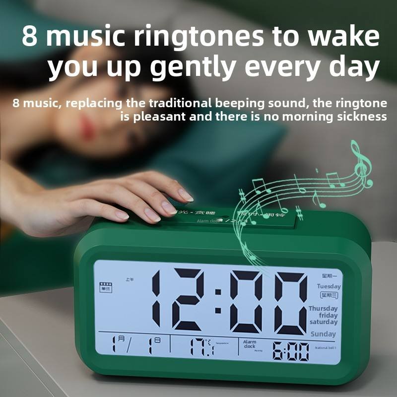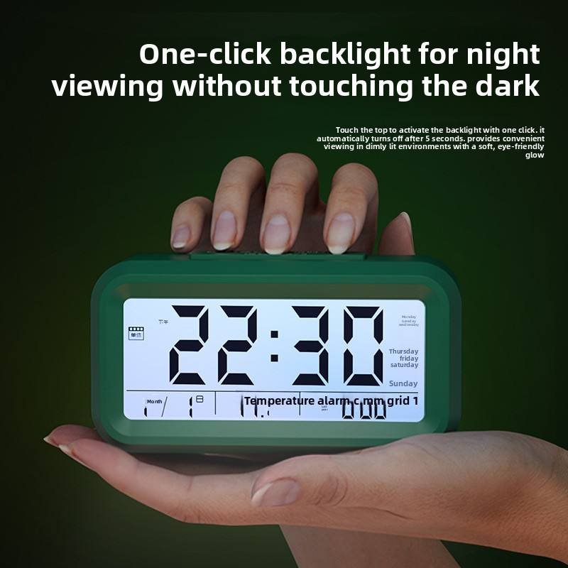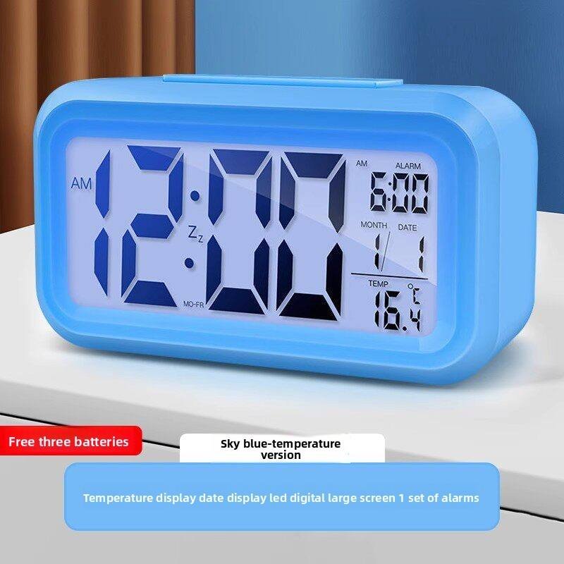 Smart LED alarm clock with backlight and clear display. Ideal for students and home use, offering reliable wake-up alarms and a compact desk-friendly design.